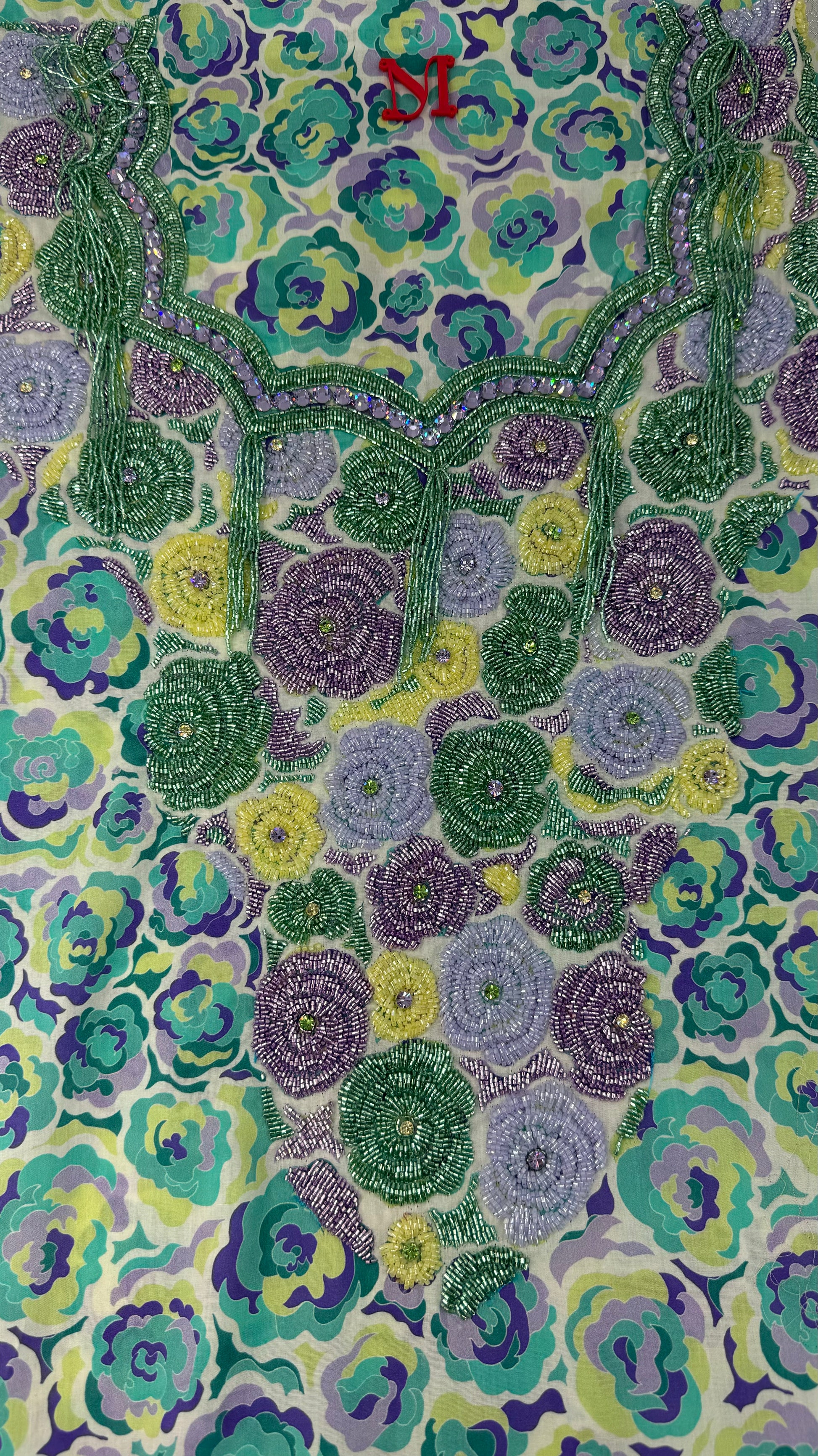 Delicate crystal neck embroidery with Preciosa hot fix and chaton crystals couture hand-embroidered floral on cotton PREMIENSE Italian brand cotton